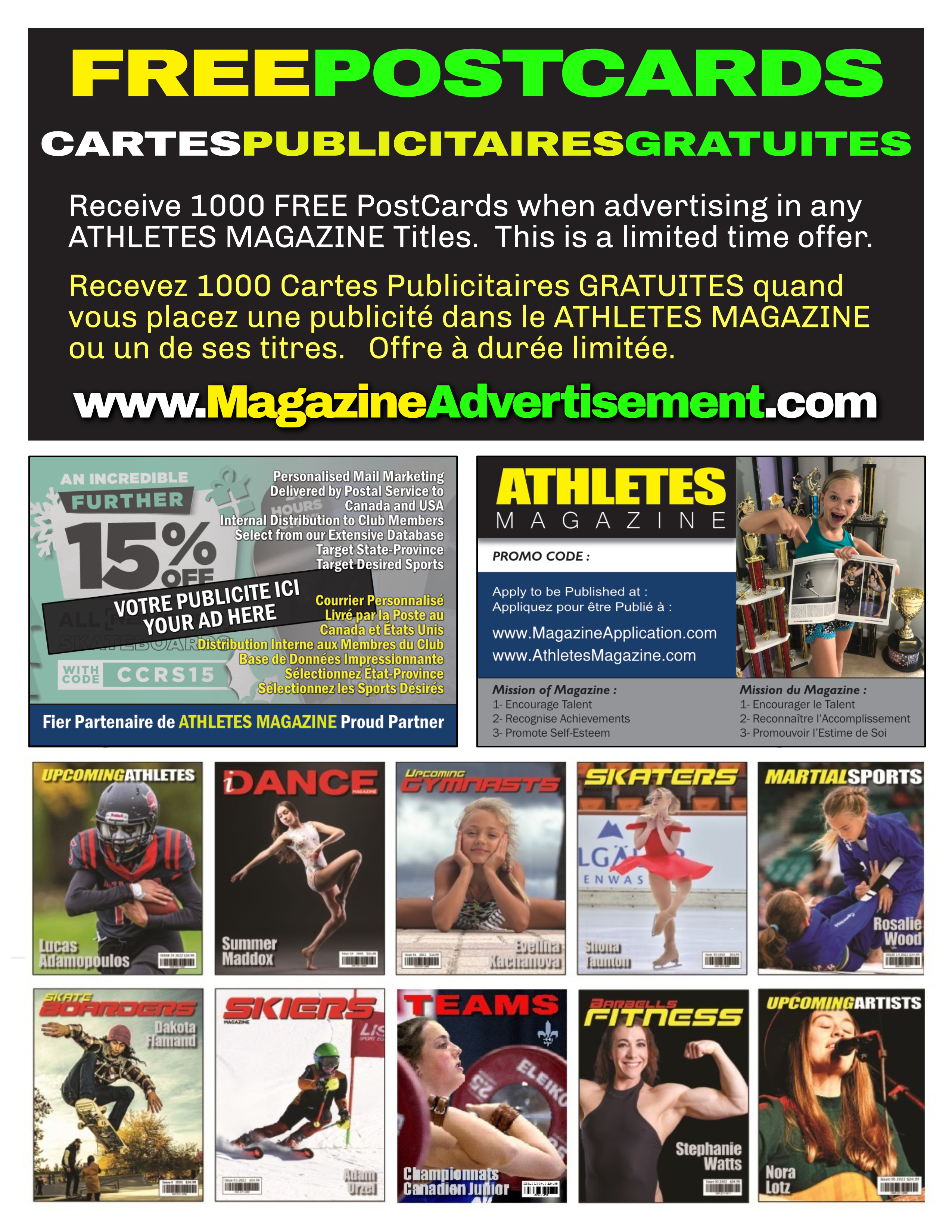 NOTE : Ajouter votre nom NOTE : Ajouter votre téléphone ou email -------------------------------- Bonjour , Nous sommes heureux de vous avoir parmi notre équipe de Prospecteurs. Ci-joint votre Entente de Travail, veuillez la signer et me la retourner. En tant que Prospecteur, votre principale responsabilité est de recruter de nouveaux clients et de vendre des abonnements publicitaires. Utilisez toujours votre code promo ci-dessous pour identifier vos ventes. Code Promo : Les abonnements publicitaires sont des paiements mensuels récurrents et vous recevrez votre commission conformément à l'accord signé. Vos tâches et responsabilités comprennent, sans toutefois s'y limiter : 1- Prospection et vente d'abonnements publicitaires, 2- Assurer la satisfaction de vos clients annonceurs, 3- Confirmation des preuves publicitaires fournies par le departement de design, 4- Distribuer les magazines aux annonceurs une fois imprimés. La compagnie de publication : 1- Recrutera et publiera des talents locaux dans les magazines, 2- Fournira les designs publicitaires pour approbation, 3- Imprimera les magazines, 3- Fournira les magazines à distribuer à vos clients, Nous offrons des tarifs publicitaires les plus bas sur le marché. Vous pouvez nous demander des rabais et offres additionelles pour sécuriser une vente. Nous avons un produit unique en Amérique du Nord. Nous imprimons des magazines avec des Talents Locaux dans l'industrie Athlétique, Artistique, de l'Art et du Spectacle, du Mannequinat et de Photographie. Nous sommes heureux de vous avoir parmi notre équipe. Si vous avez des questions, n'hésitez pas à me contacter. Sincèrement Directeur des ventes